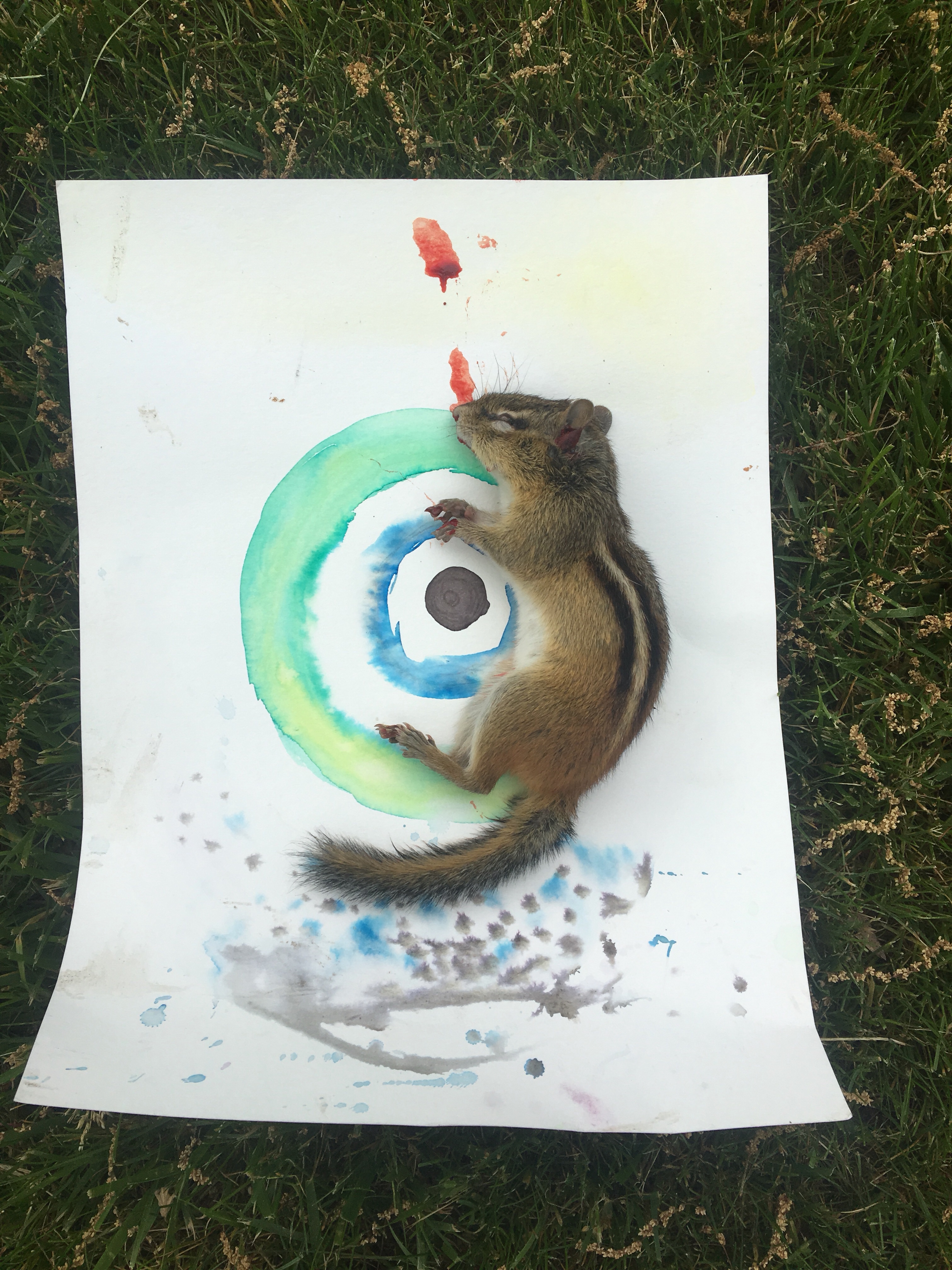 You lay dead in a circle of color.
